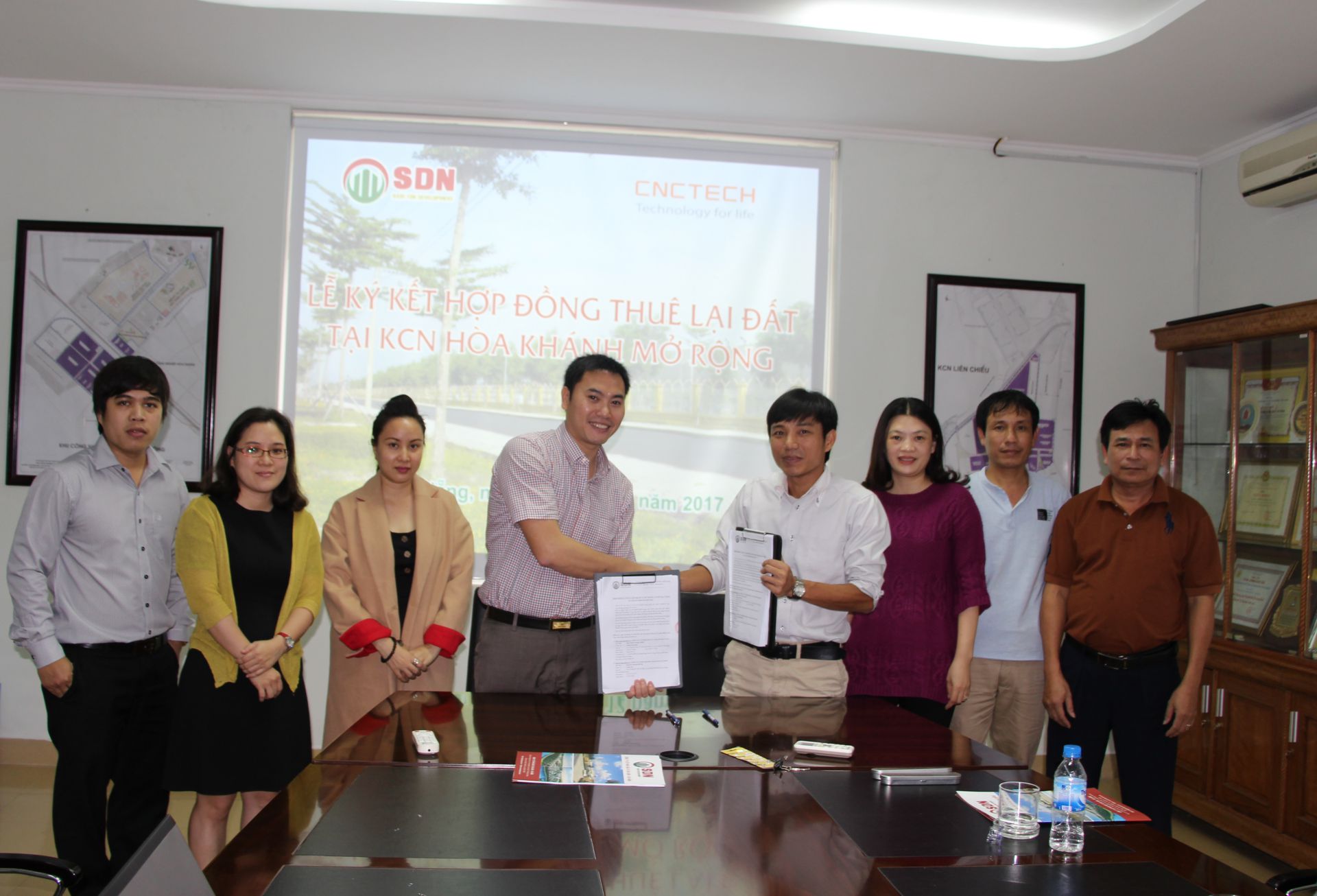 Ông Trần Ngọc Điệp – Tổng Giám đốc SDN và Ông Hà Mạnh Hùng tiến hành ký kết Hợp đồng thuê lại đất. Nguồn: SDN.