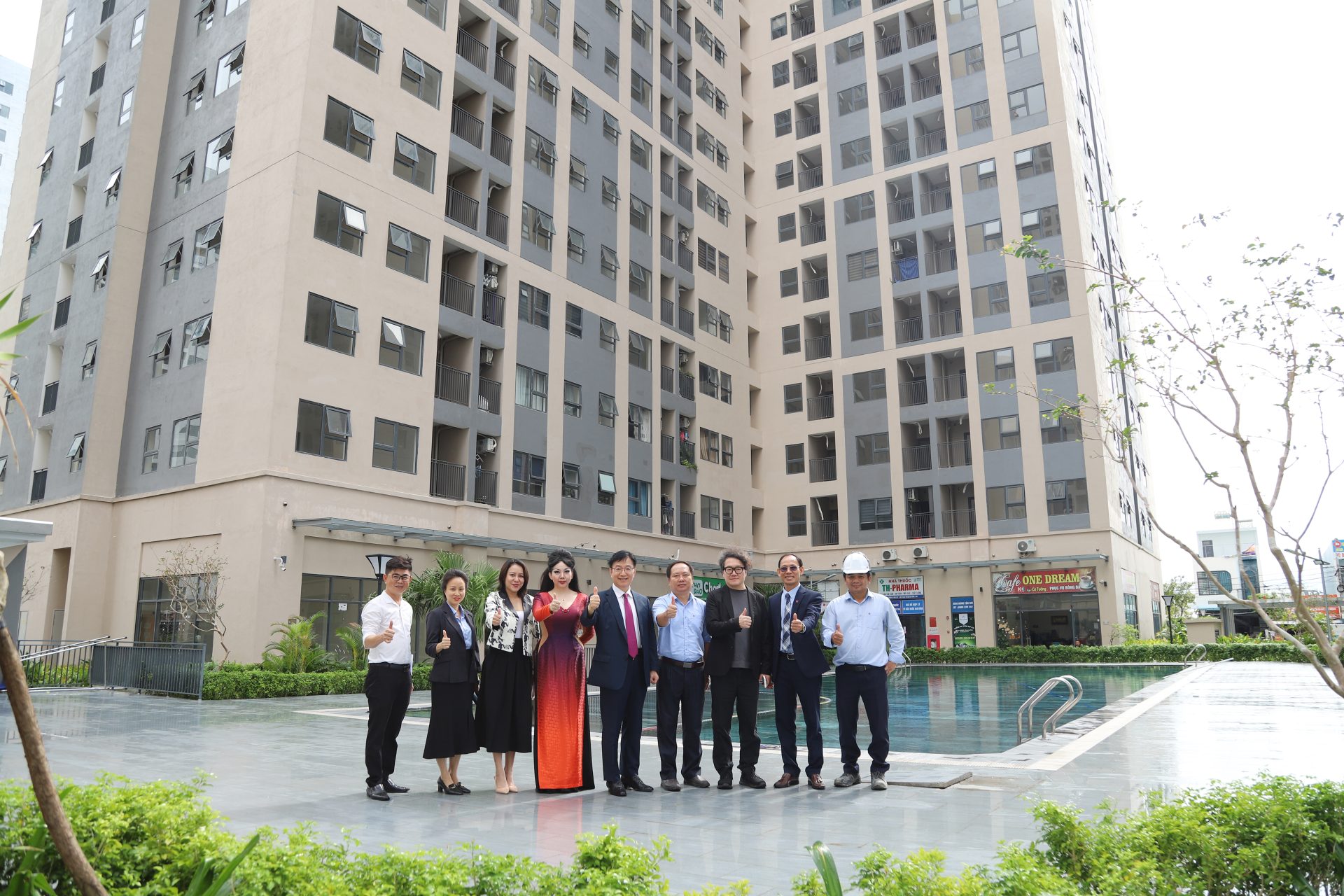 Từ trái sang phải: bà Nguyễn Đăng Thanh Hải – Giám đốc điều hành Công ty Cổ phần Đầu tư Sky Phoenix; bà Nguyễn Quỳnh Như – Chủ tịch Công ty TNHH MTV Quỳnh Paris, đại sứ toàn cầu của KCS; ông Park Bong Kyu – Chủ tịch KCS; Đồng chí Hồ Kỳ Minh – PCT TP Đà Nẵng; ông Hah Tae Seok – Giám đốc điều hành Scale Architecture; ông Mai Công Hồ – Tổng Giám đốc SDN
