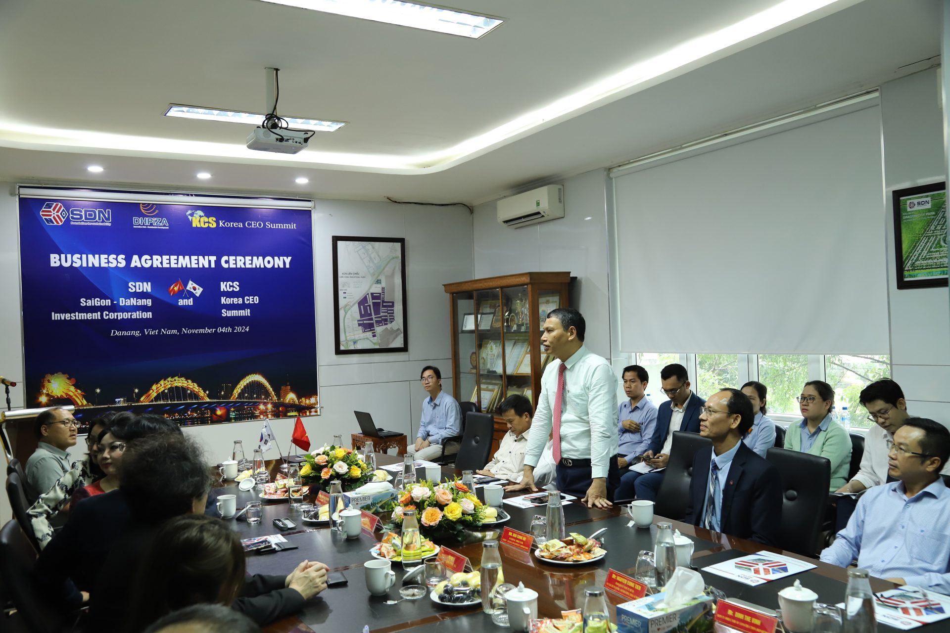 Tiếp nối sự kiện ký kết Hợp đồng Hỗ trợ Kinh doanh giữa SDN và Korea CEO Summit tại Thủ đô Seoul, Hàn Quốc, Trưa ngày 4/11/2024, tại văn phòng Công ty CP Đầu tư Sài Gòn – Đà Nẵng, hai bên tiếp tục tổ chức lễ ký kết tại Đà Nẵng với sự chứng kiến của nhiều lãnh đạo thành phố và các doanh nghiệp Hàn Quốc đang hoạt động trên địa bàn thành phố Đà Nẵng, đặc biệt vinh dự có sự góp mặt của Đồng chí Hồ Kỳ Minh – Ủy viên Ban Thường vụ Thành ủy, Phó Chủ tịch thường trực Thành phố Đà Nẵng.